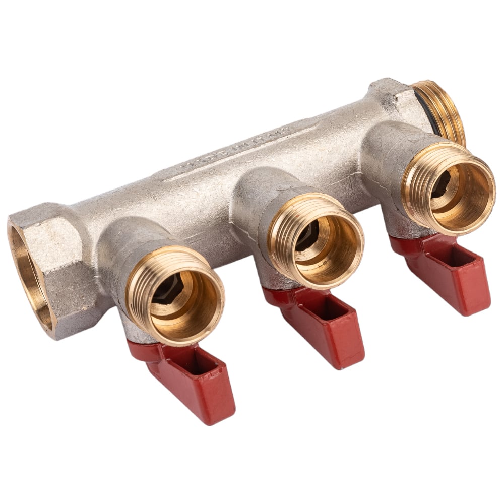 Коллектор с шаровыми кранами STOUT Smb 6210 341203 3/4", 3 отвода 1/2", красные ручки RG0091AACQM2BK