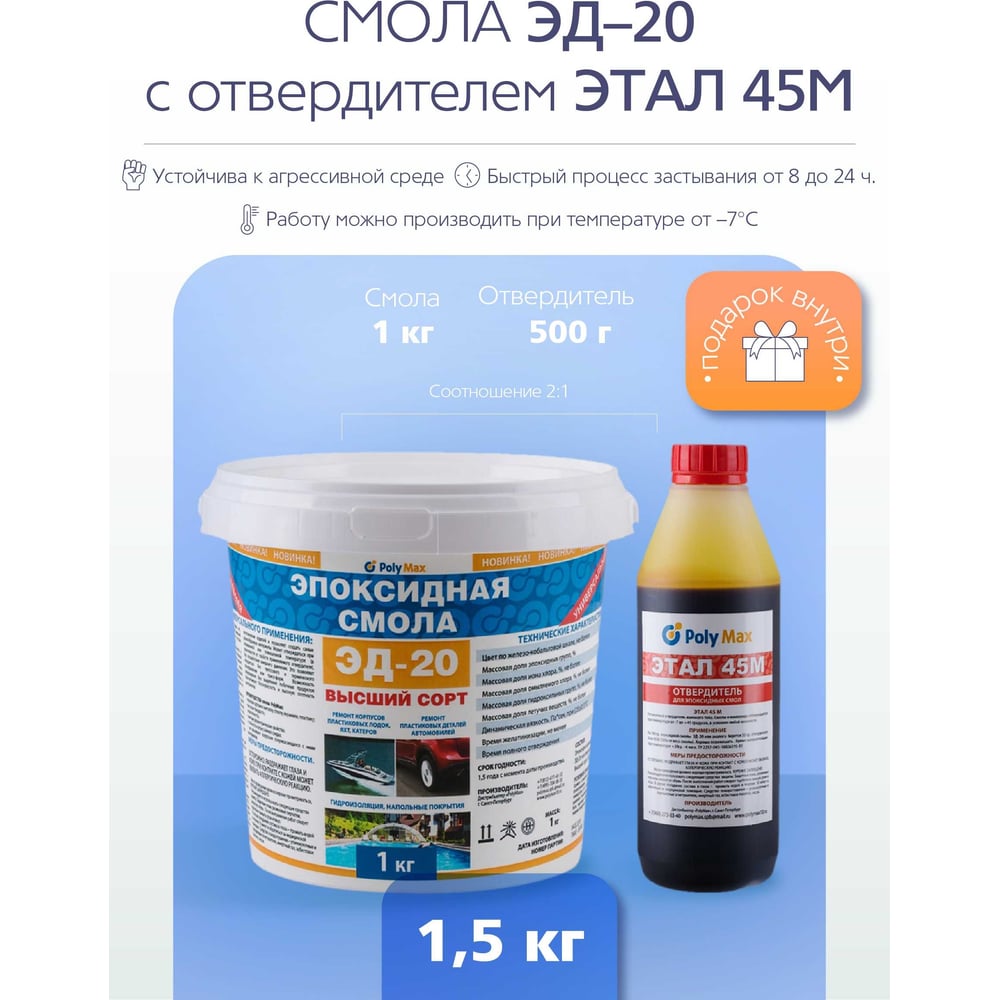 | Соотношение смолы к отвердителю | 100:50 |