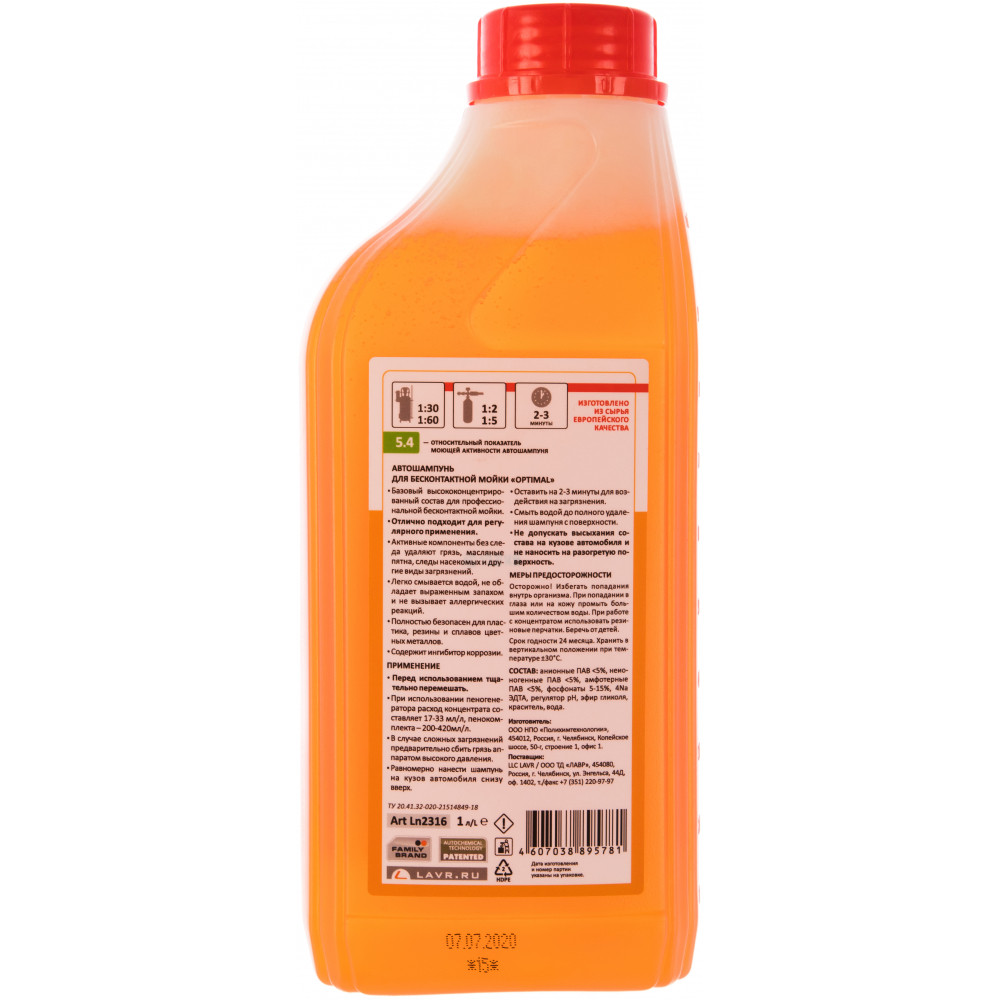 Автошампунь для бесконтактной мойки LAVR OPTIMAL Ln2316