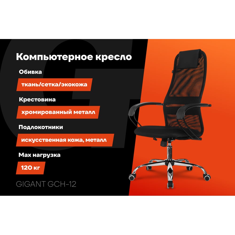 Компьютерное офисное кресло Gigant черное ткань, сетка, с подлокотниками, хром, 120 кг GCH-12