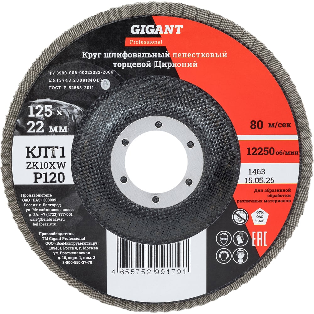 Круг лепестковый 125x22,2 мм; P120; цирконий, 10 шт Gigant Professional GNT-P120-10