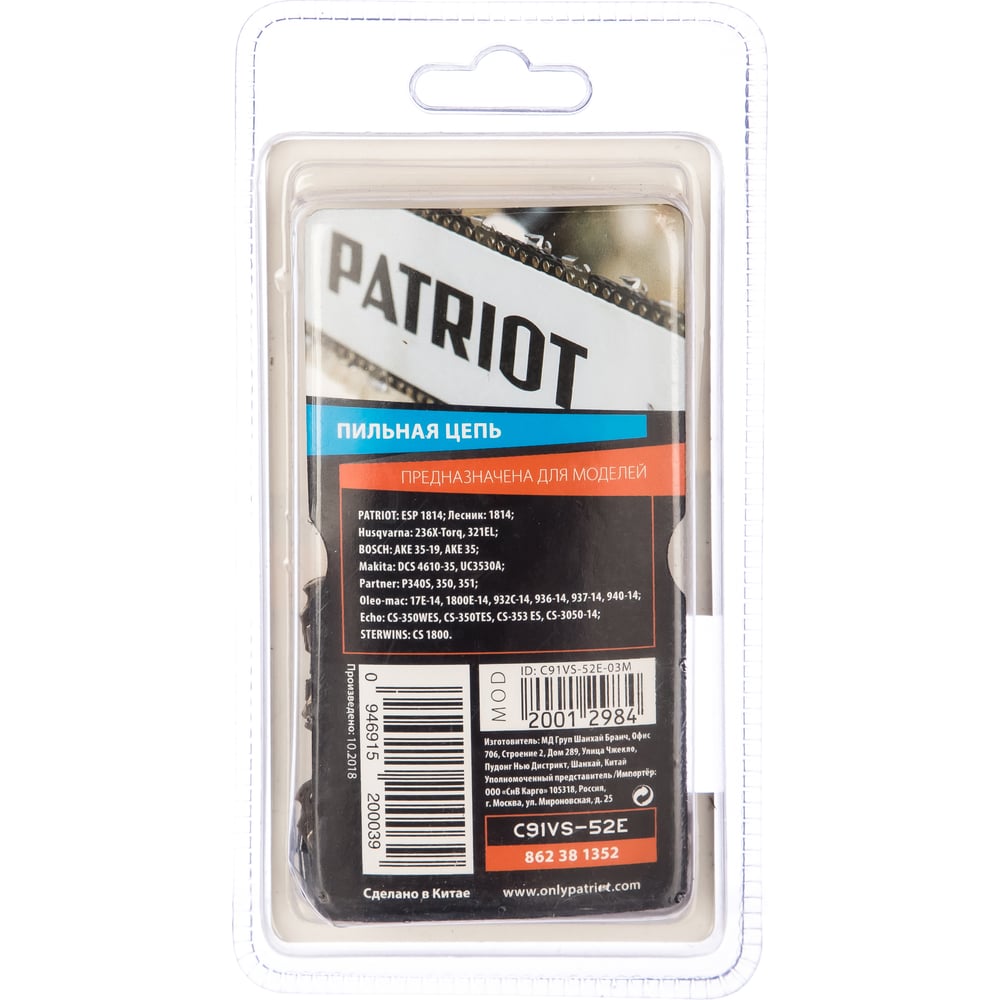 Patriot цепь 3/8 1,3 52 звена блистер 862381352