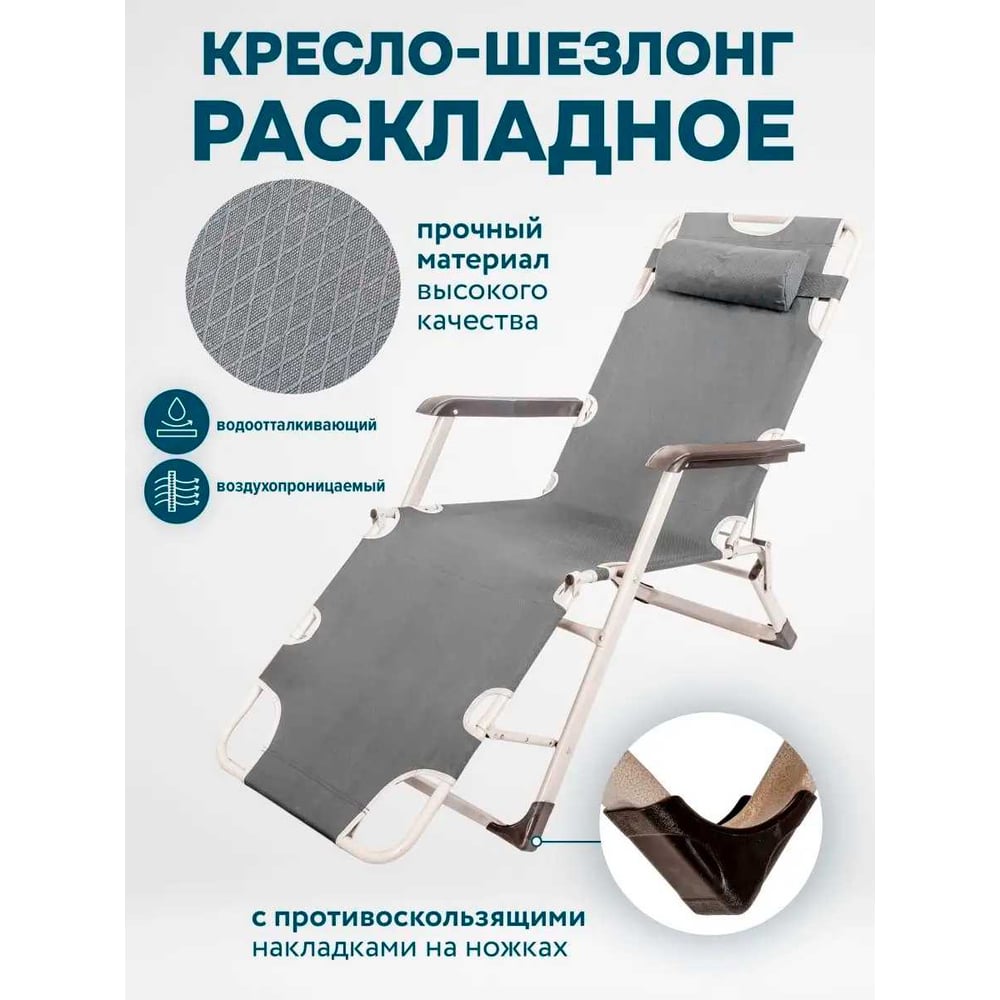 Шезлонг складной с подголовником и подлокотниками WMC TOOLS серый WMC-FG-HY-8007G(51773)