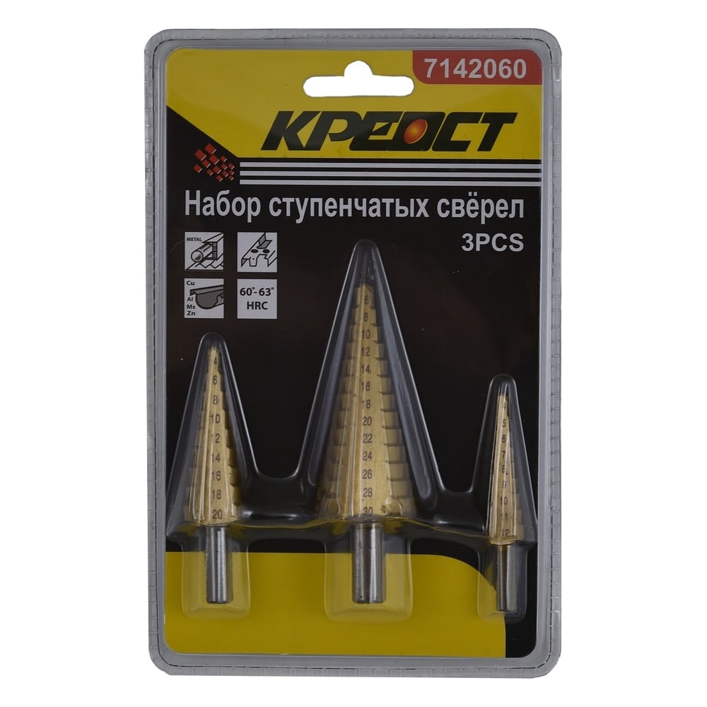 Сверло ступенчатое по металлу 3 шт Креост 7142060