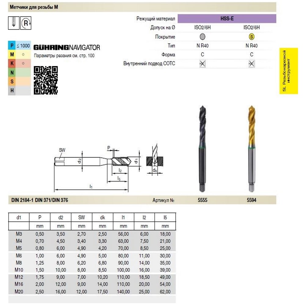 Метчик Guhring M5, тип N R40, DIN371, HSS-E, TiN 5594 5,000