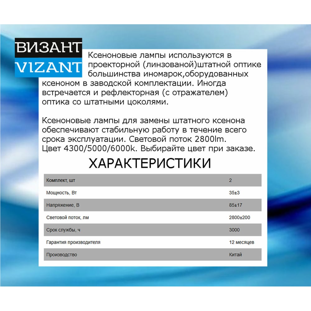 Ксеноновые лампы Vizant HB4, 9006, 6000 K, 2 шт. 6hb4