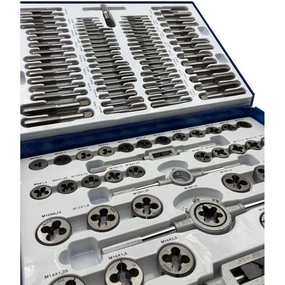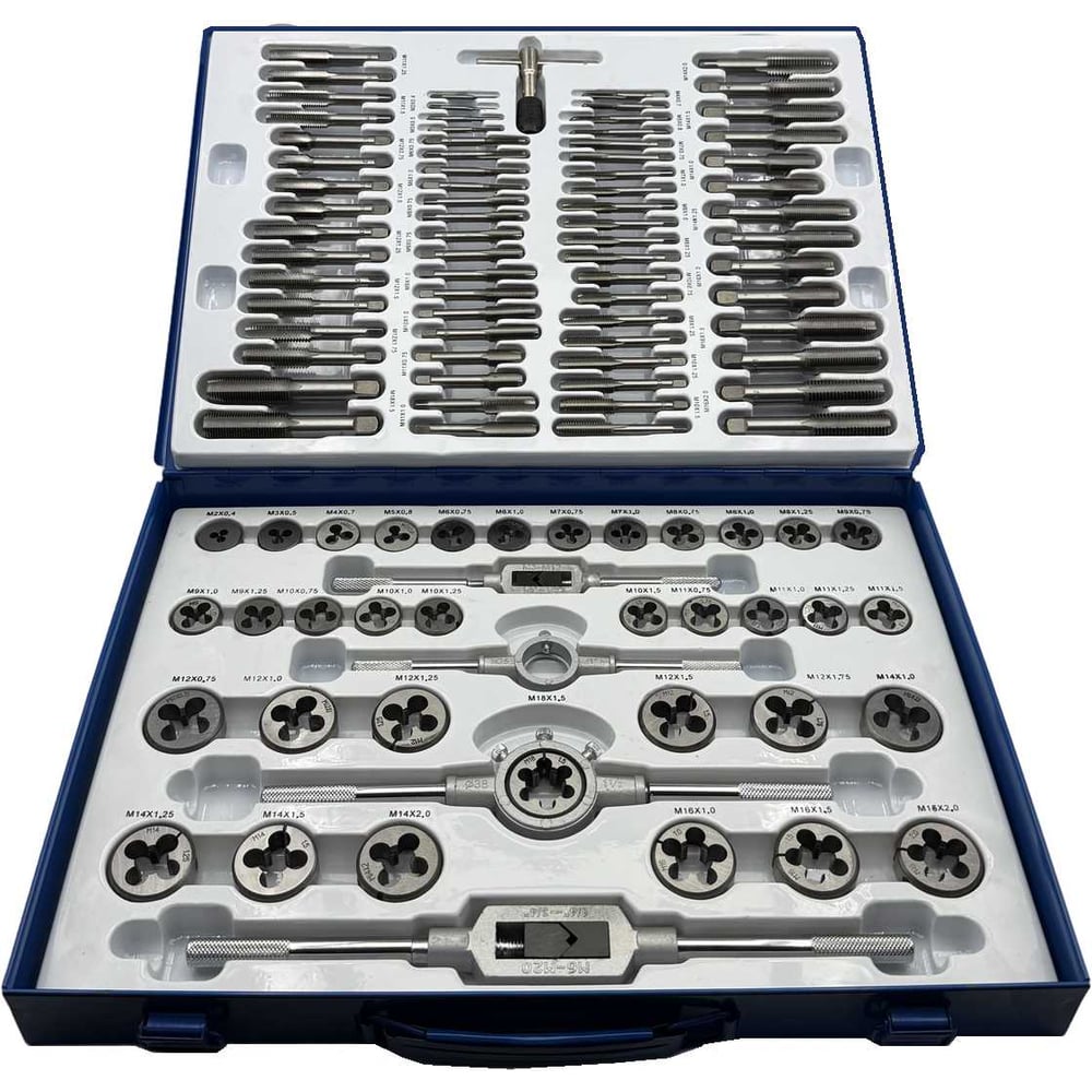 Набор метчиков и плашек TORNERI М2 - М18 (110 предметов) в металлическом кейсе Т023748