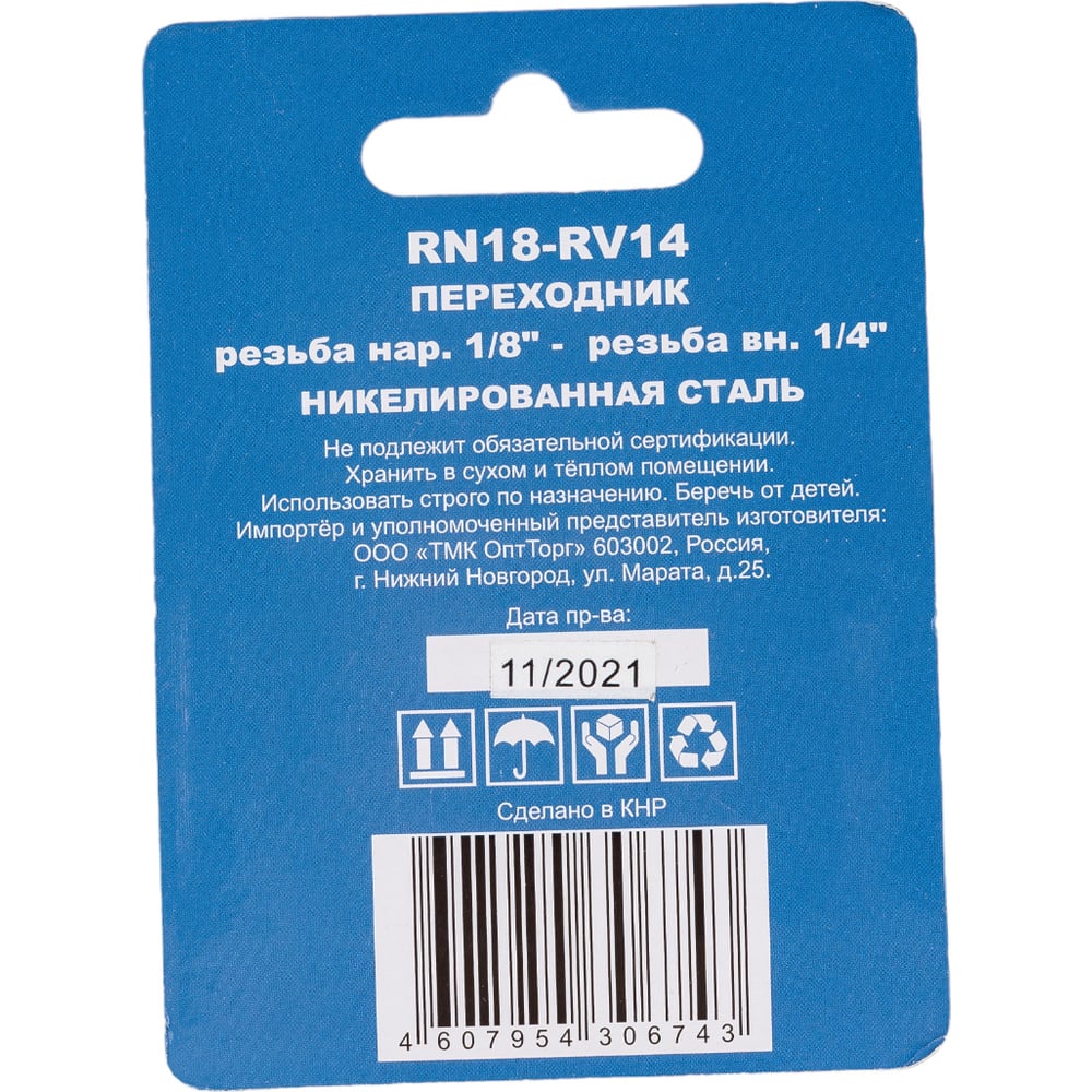 Переходник RN18-RV14 наружная резьба 1/8" - внутренняя резьба 1/4" CONCORDE 6619334