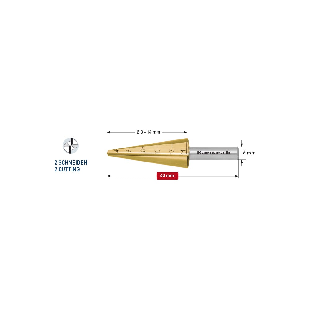 Сверло коническое 3-14 мм Karnasch 21.3019