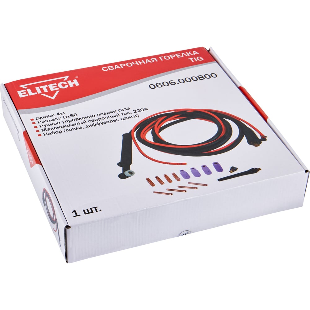 Горелка сварочная (4 м; DX50) для TIG сварки Elitech руч.управ.подачи газа 0606.000800 172525