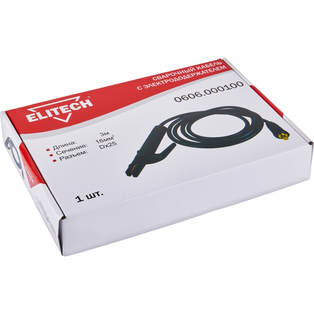 Elitech кабель сварочный,3м,dx25,16кв мм,электрододержатель 0606.000100