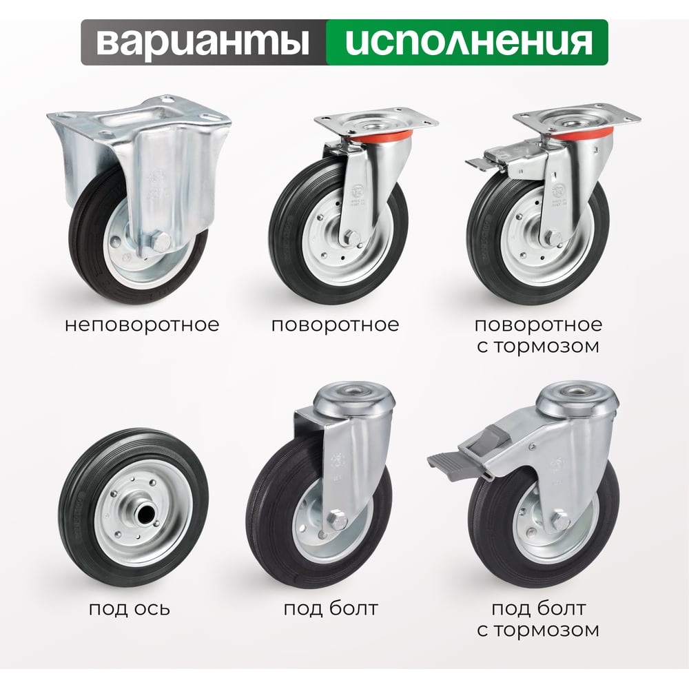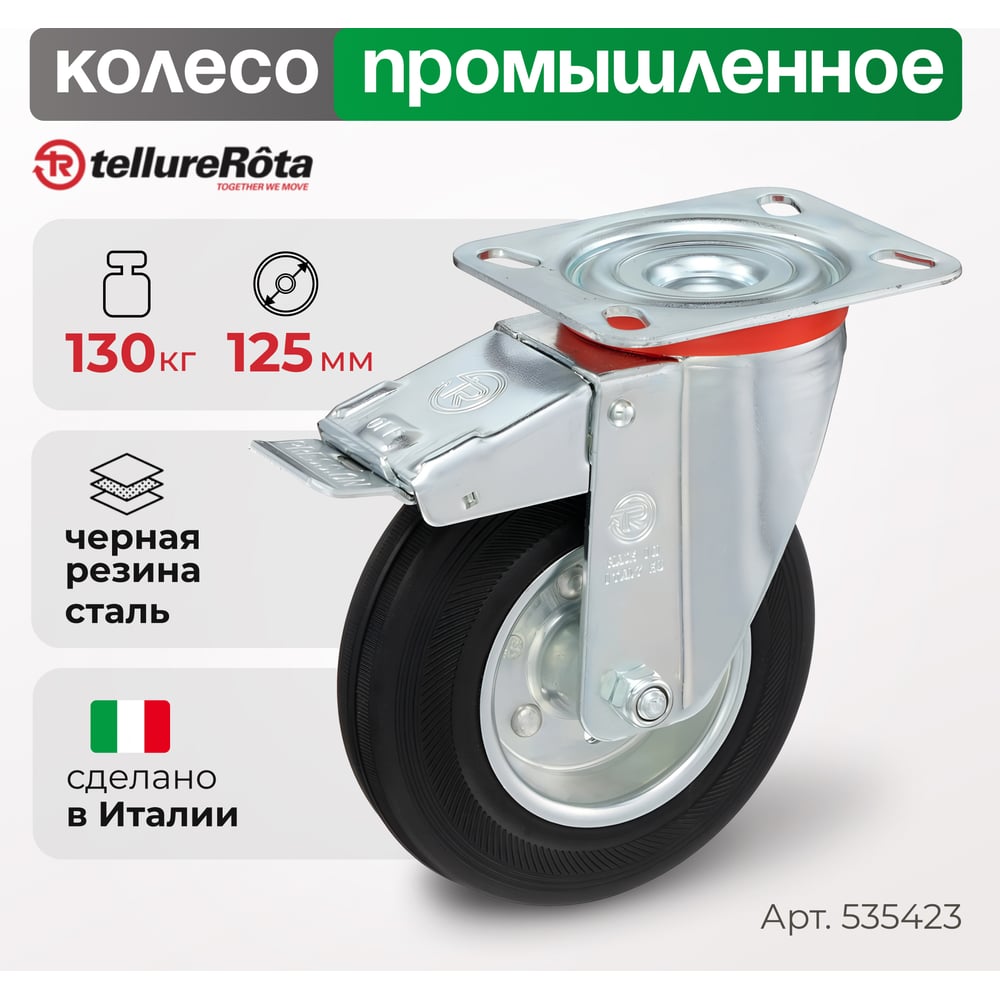 Колесо с вращающейся опорой, пластиной крепления и передним тормозом (125 мм; 130 кг) Tellure rota 535423