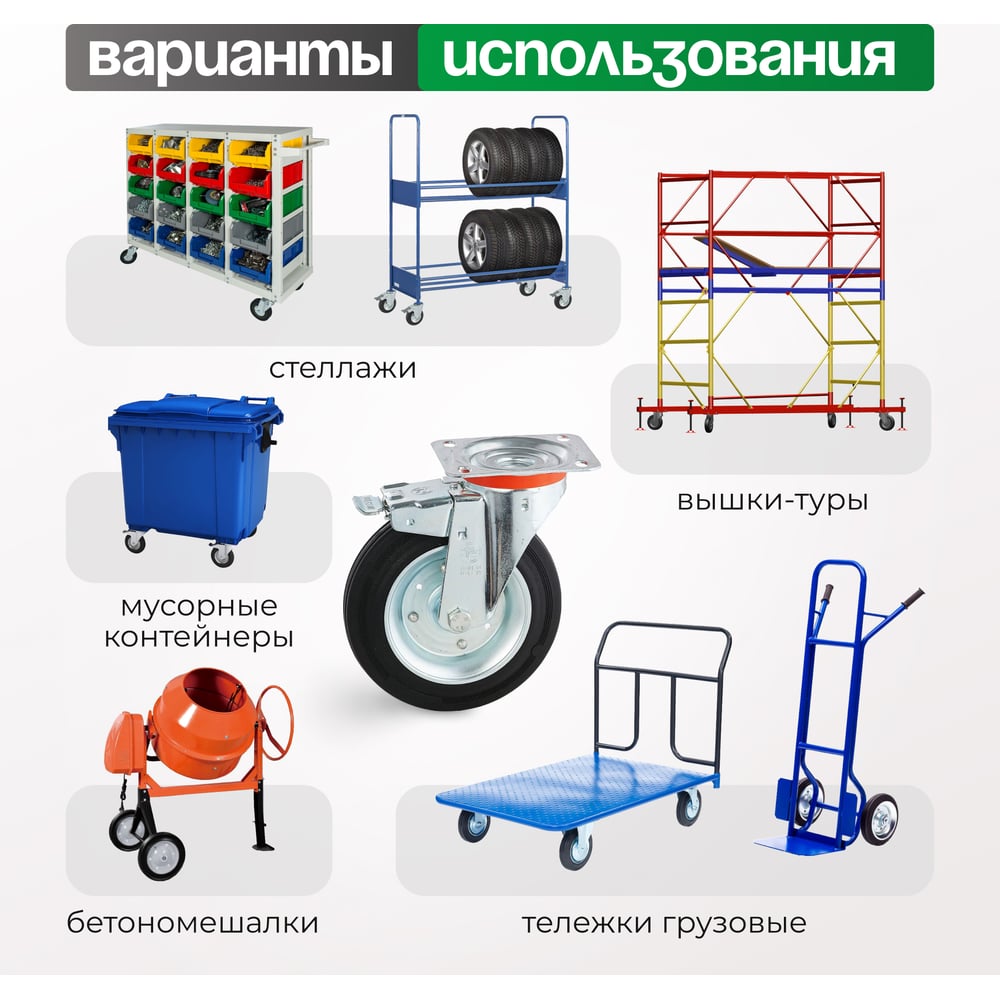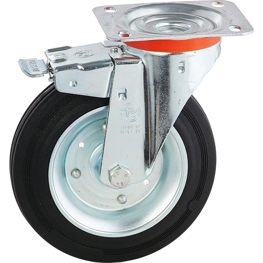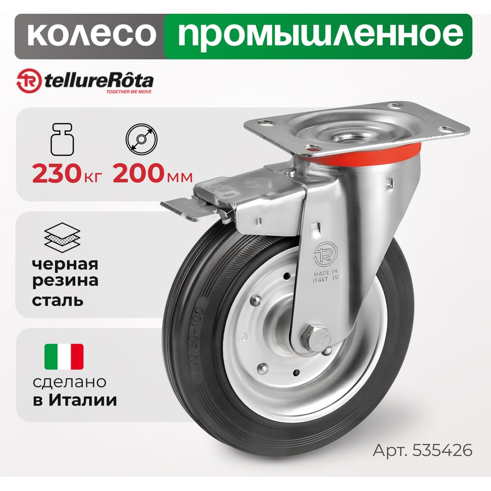 Колесо с вращающейся опорой, пластиной крепления и передним тормозом (200 мм; 230 кг) Tellure rota 535426