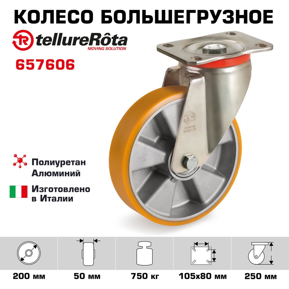 Tellure rota колесо большегрузное поворотное, d- 200мм, полиуретан tr, алюминий, 657606