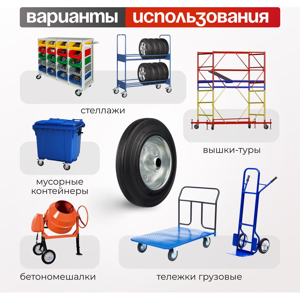 Стелла-техник колесо под ось 20мм диаметр 200мм, грузоподъемность 185кг, резина, металл, 4000-200