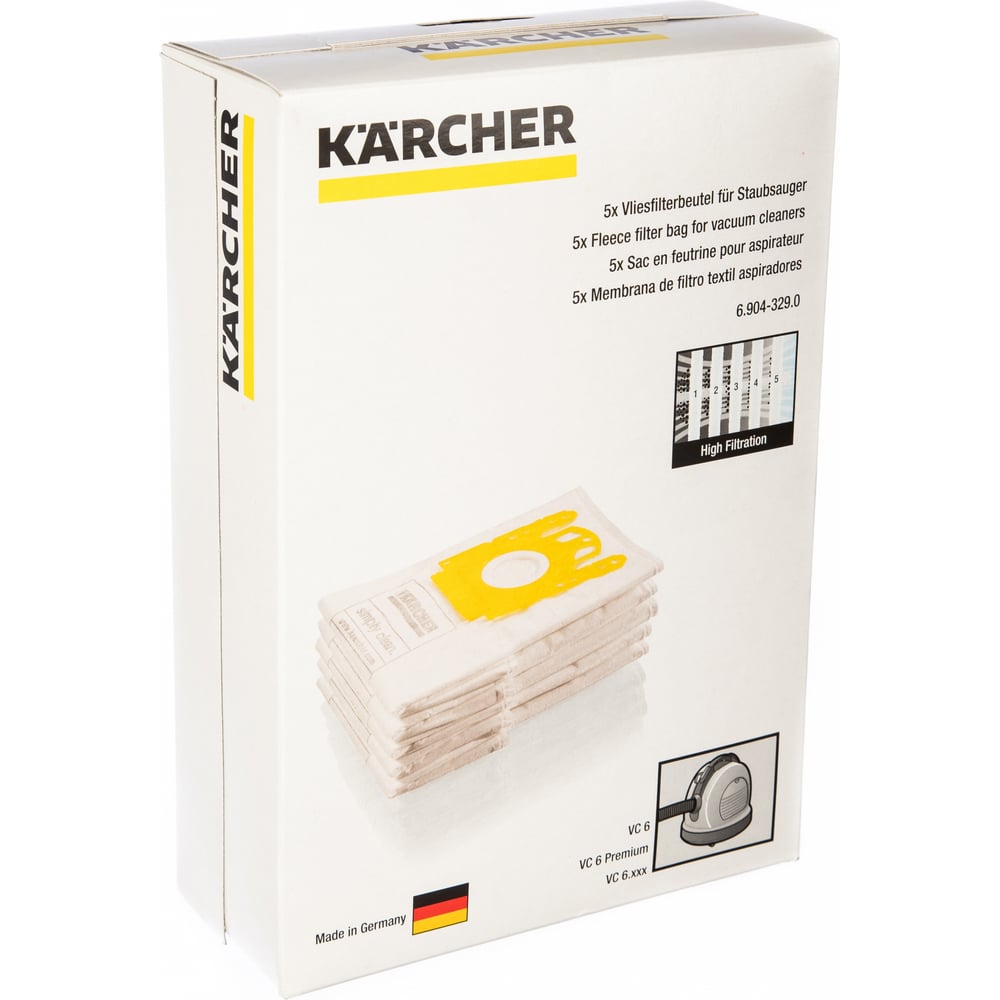 Фильтр-мешок из нетканого материала 5 шт. для пылесосов VC 6100; VC 6200; VC 6300 Karcher 6.904-329