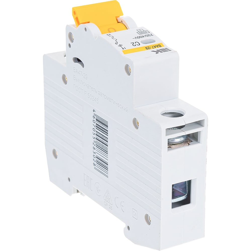 Автоматический 1-полюсный выключатель, 2А, С ВА47-29 4.5кА IEK MVA20-1-002-C