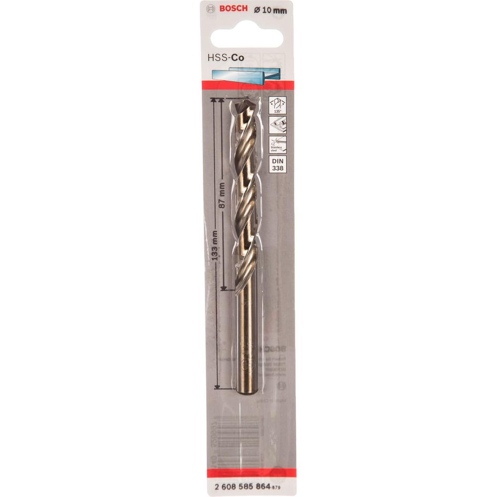 Сверло HSS-Co Standardline (10х133 мм; DIN 338) по металлу Bosch 2608585864