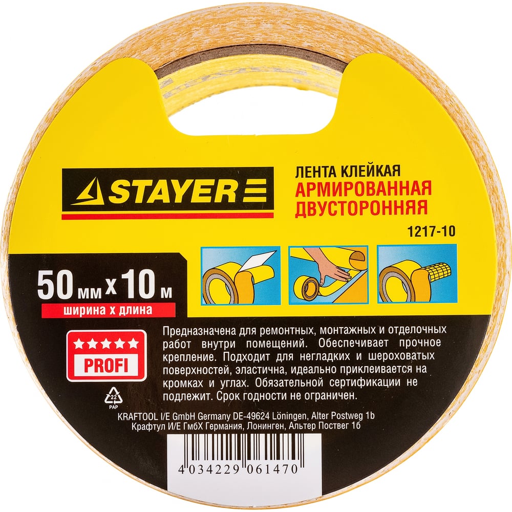 Лента клеящая двухсторонняя "PROFI" (50 мм; 10 м) укрепленная тканью Stayer 1217-10