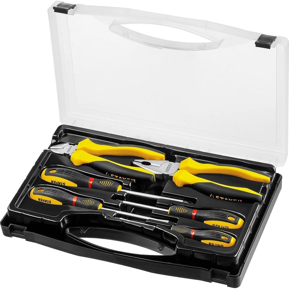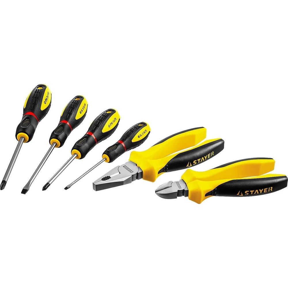 Набор слесарно-монтажного инструмента STAYER CHROMAX: 4 отвертки, плоскогубцы и бокорезы, 6 предметов 2202-H6
