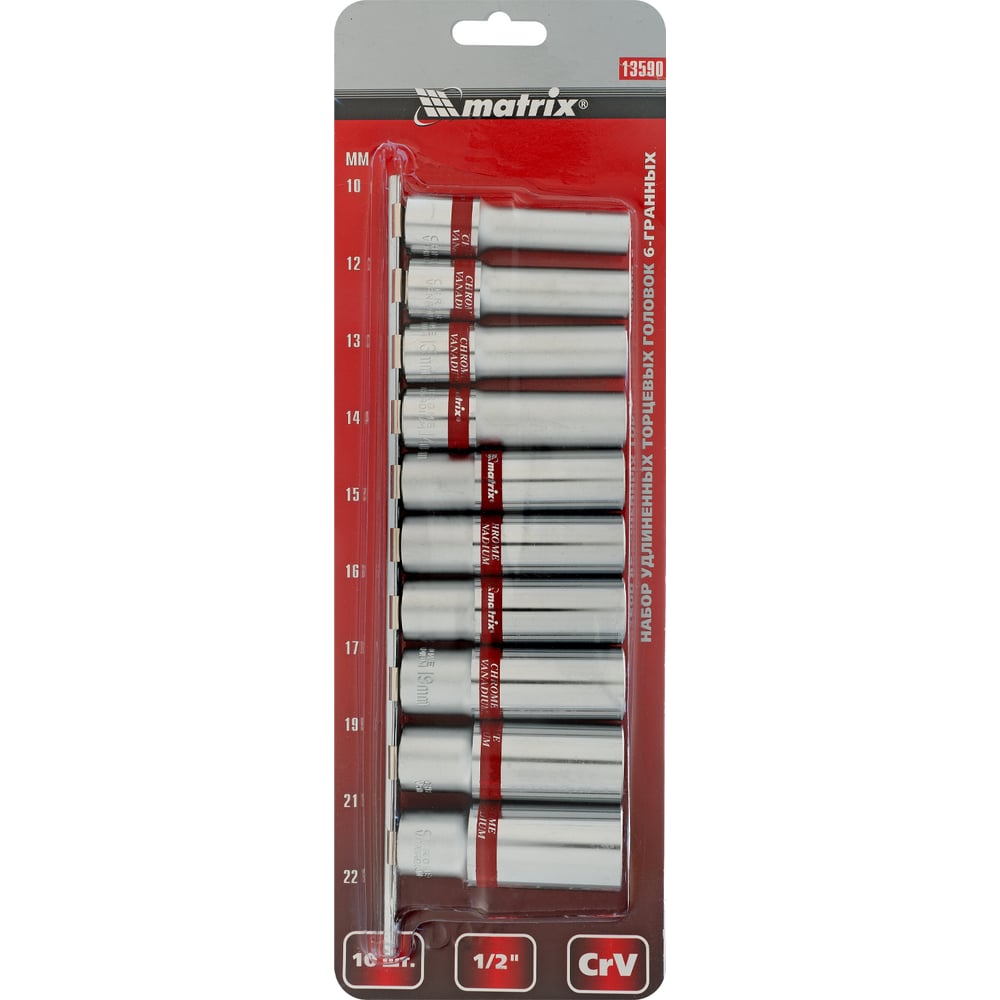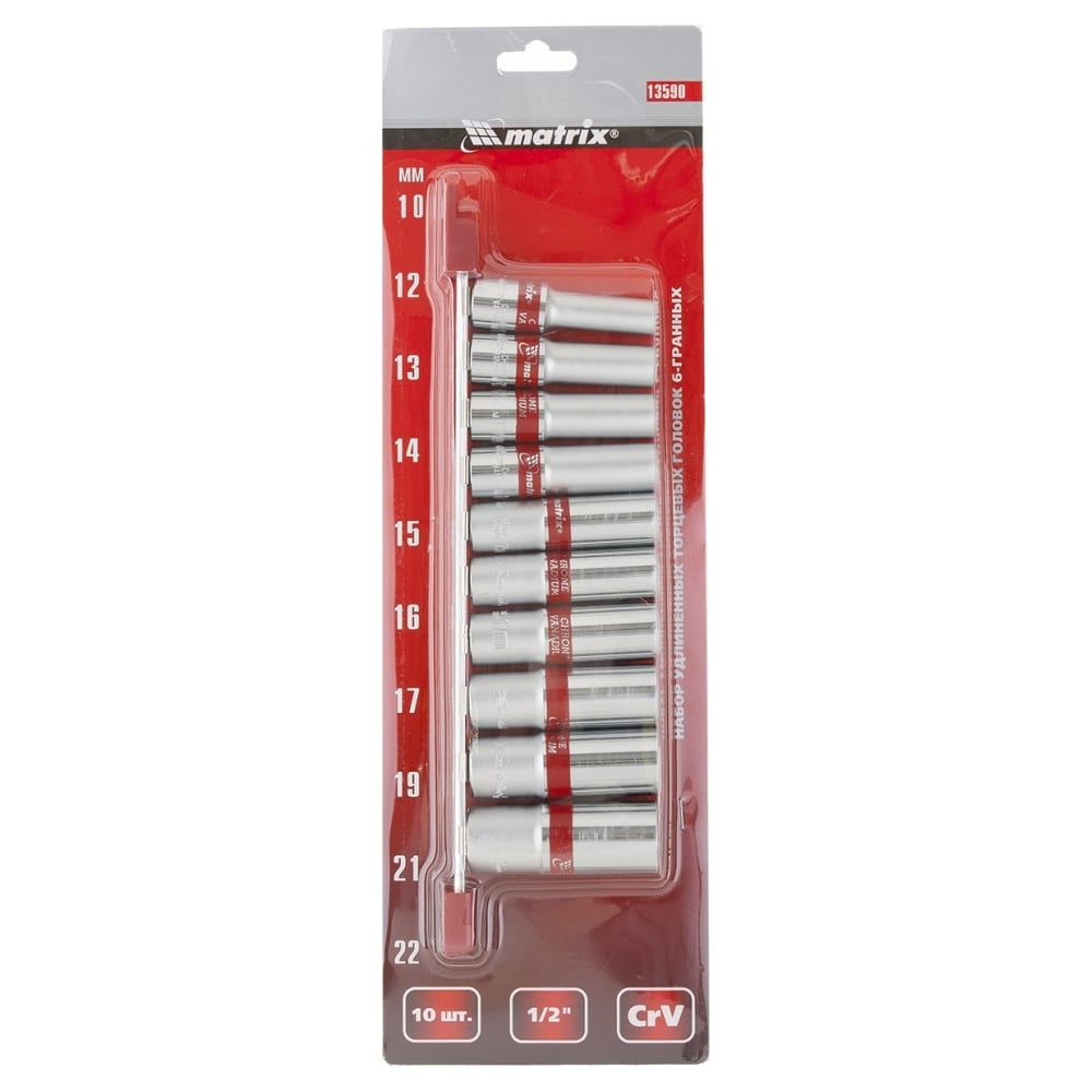 Набор удлиненных торцевых головок (6-гранные; 1/2"; 10-22 мм; 10 шт.) MATRIX 13590