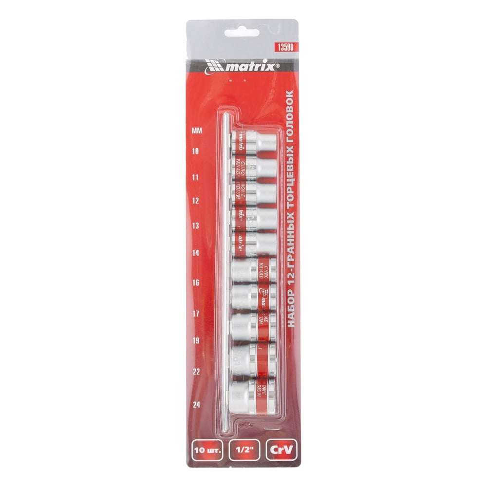 Набор торцевых головок (12-гранные; 1/2"; 10-24 мм; 10 шт.) MATRIX 13596