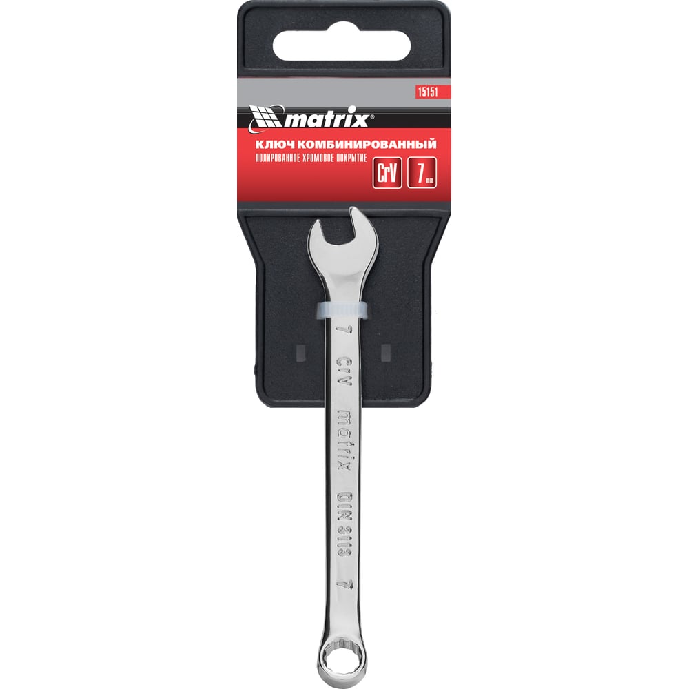 Ключ комбинированный, MATRIX 7 мм, CrV, полированный хром// 15151