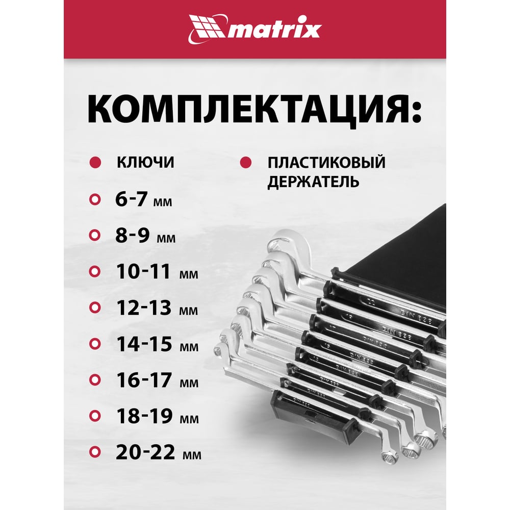 Набор накидных ключей 6–22 мм MATRIX 15332