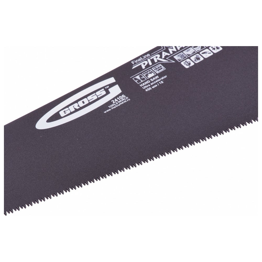 Ножовка по дереву GROSS PIRANHA 450 мм,11-12 TPI,зуб-3D,кал.зуб,тефл.покр.полотна,2-х комп.рук-ка 24106