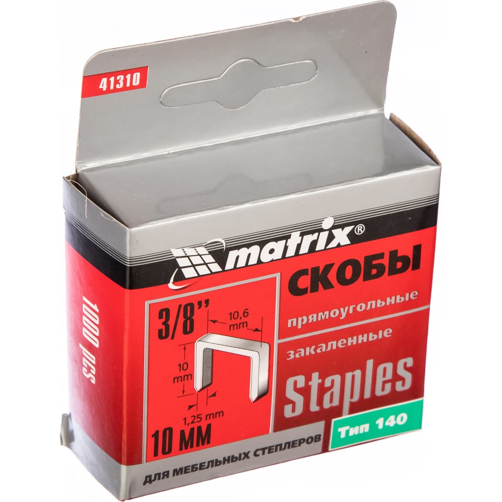 Скобы закаленные 1000 шт. для мебельного степлера (10 мм; тип 140) MASTER MATRIX 41310