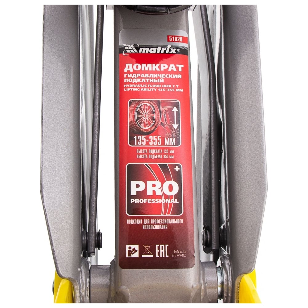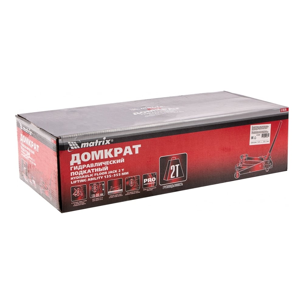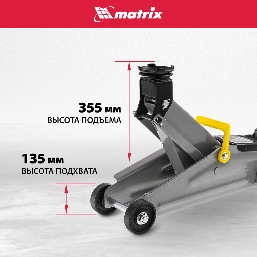 Гидравлический подкатной домкрат MATRIX MASTER 2 т, h подъема 135–355 мм 51020