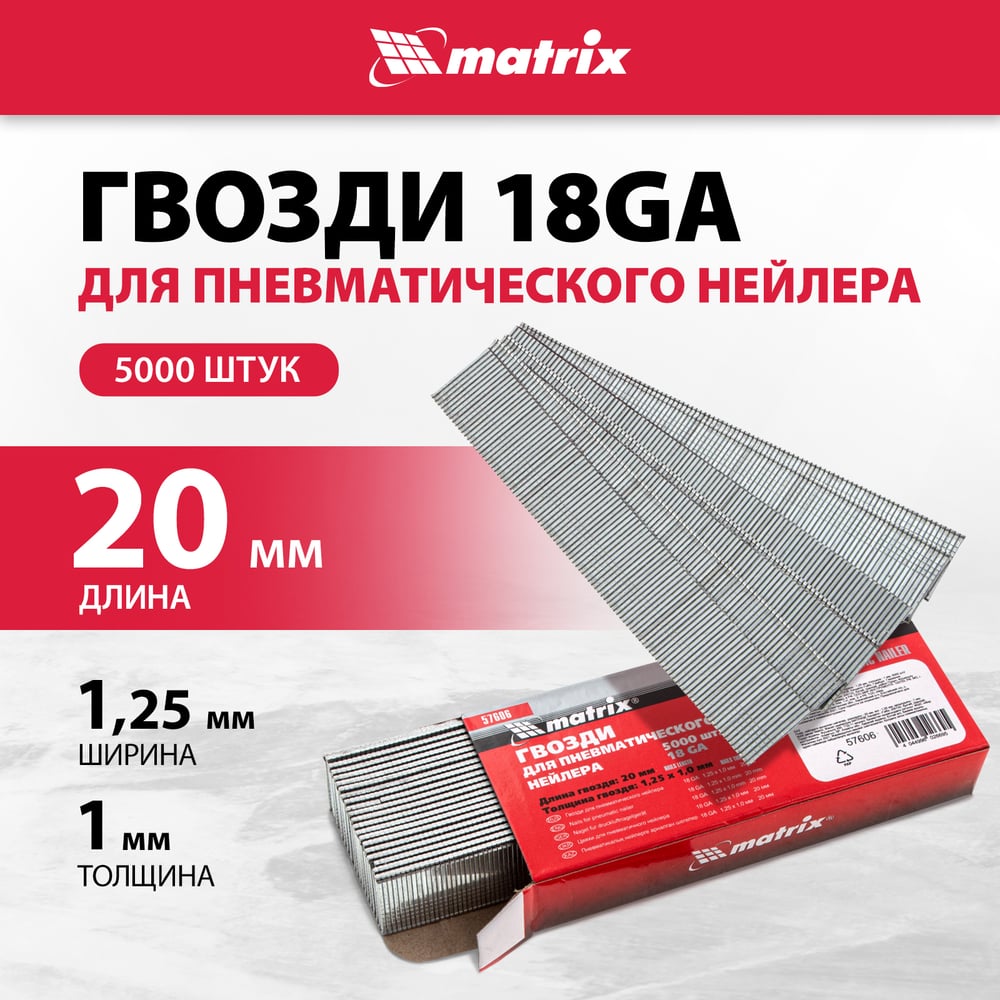 Гвозди для пневматического нейлера (20х1.25х1 мм) 5000 шт. MATRIX 57606