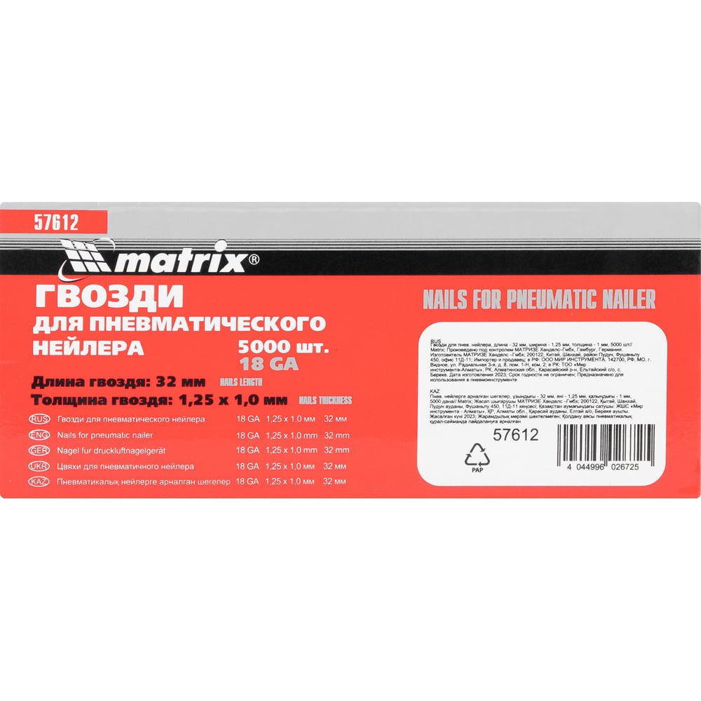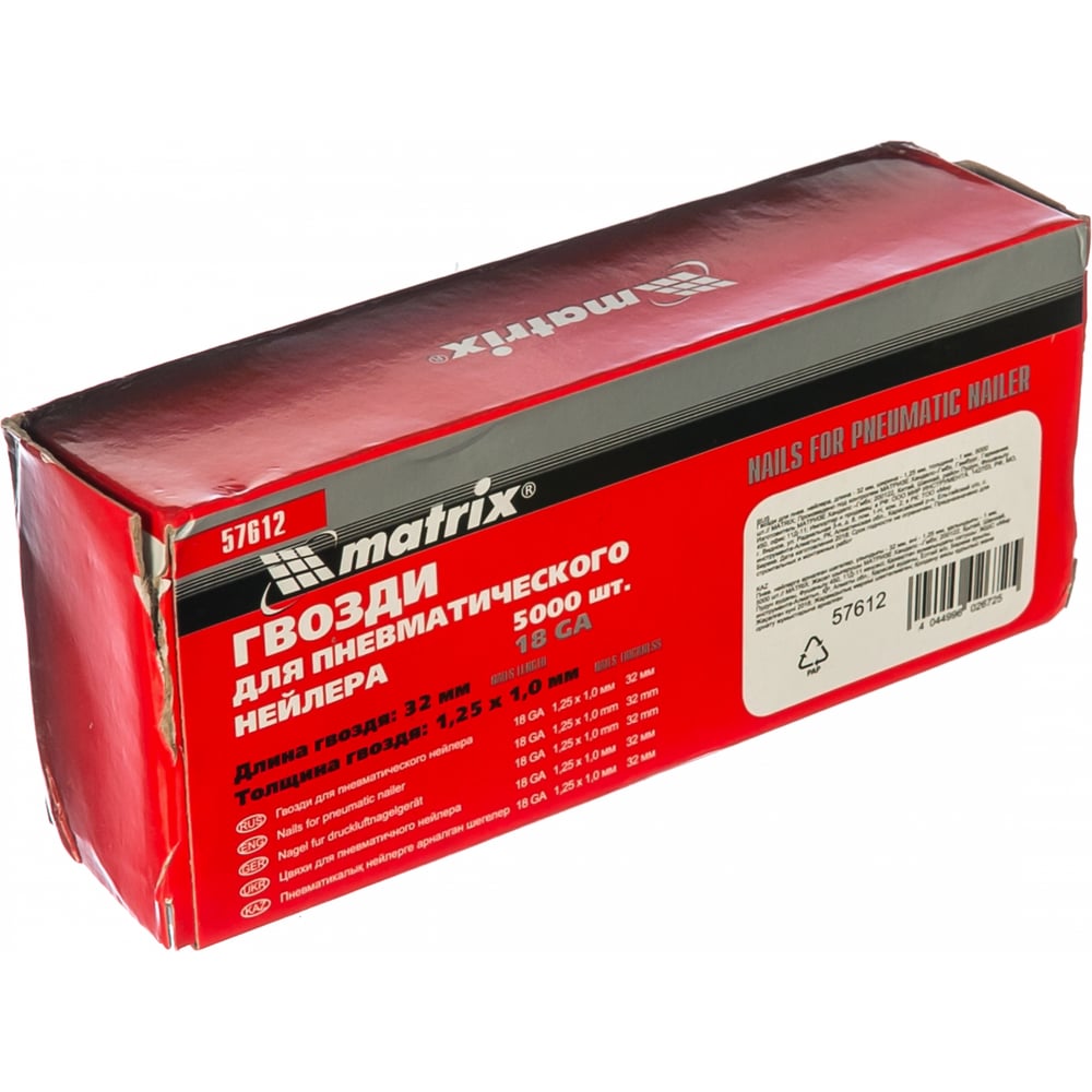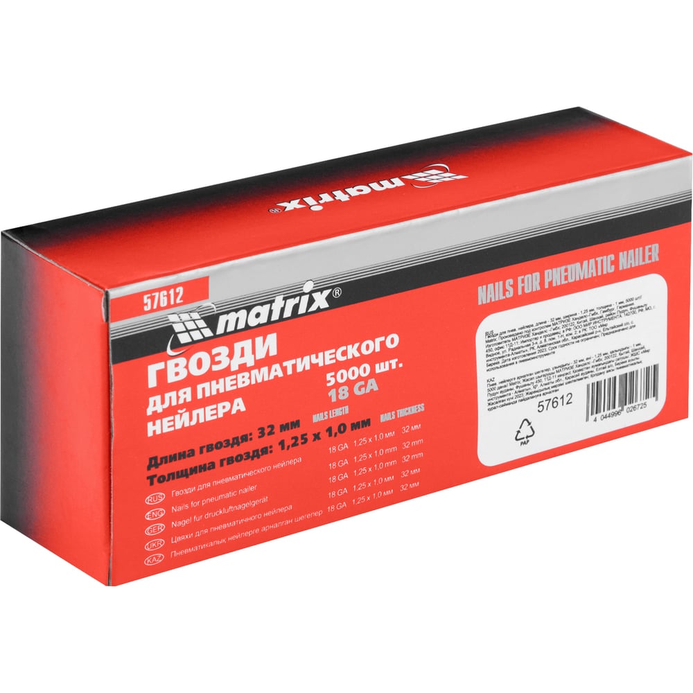 Гвозди для пневматического нейлера (32х1.25х1 мм) 5000 шт. MATRIX 57612