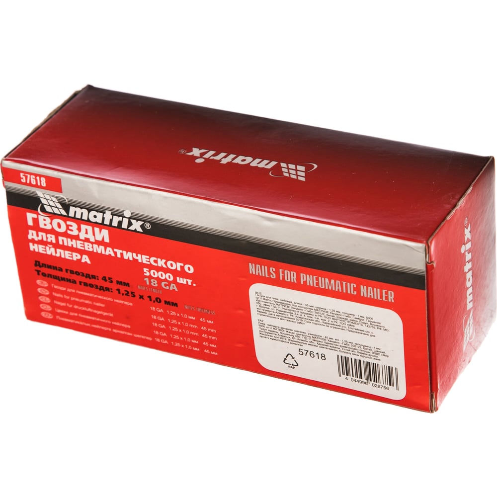 Гвозди для пневматического нейлера 45ммх1,25ммх1мм, 5000 шт MATRIX 57618