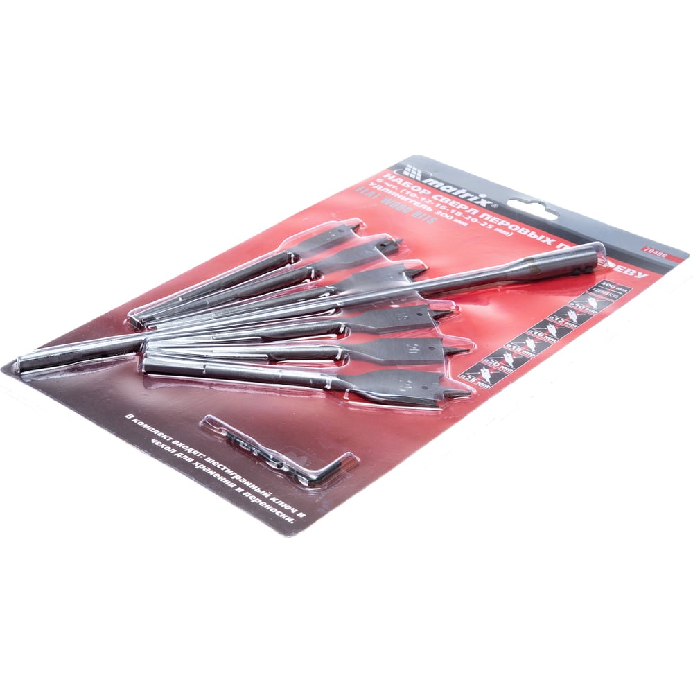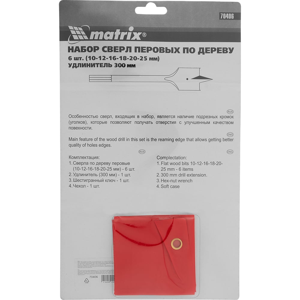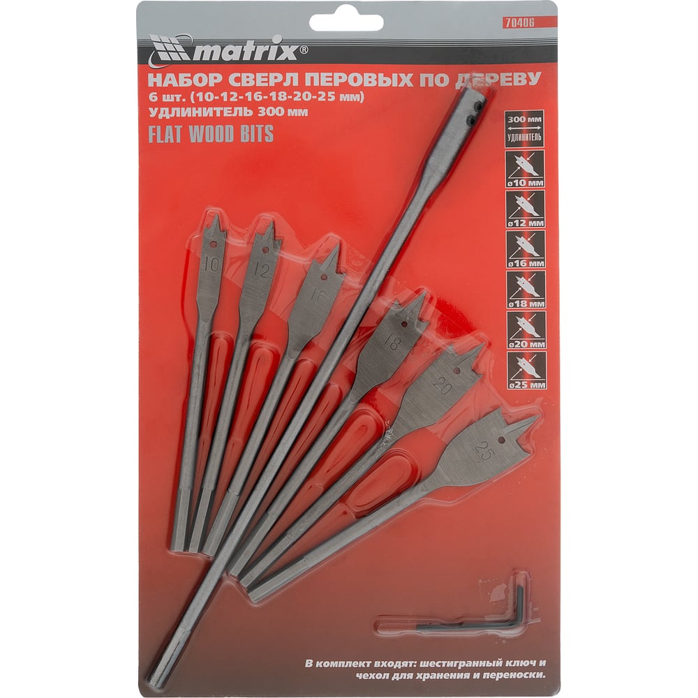 Набор сверл перовых по дереву (10-25 мм; 6 шт.) + удлинитель MATRIX 70406