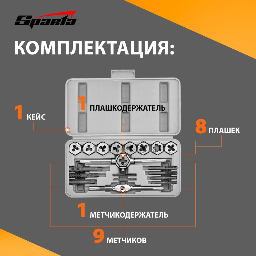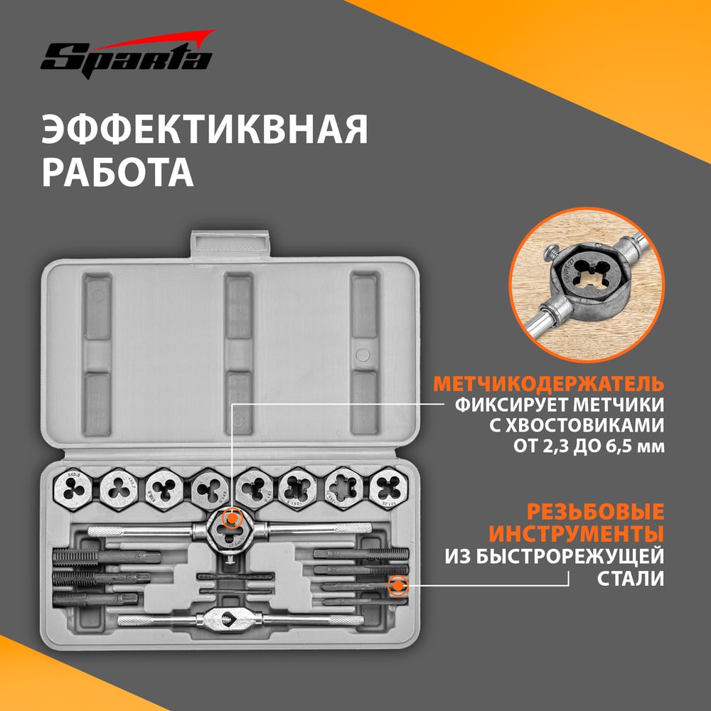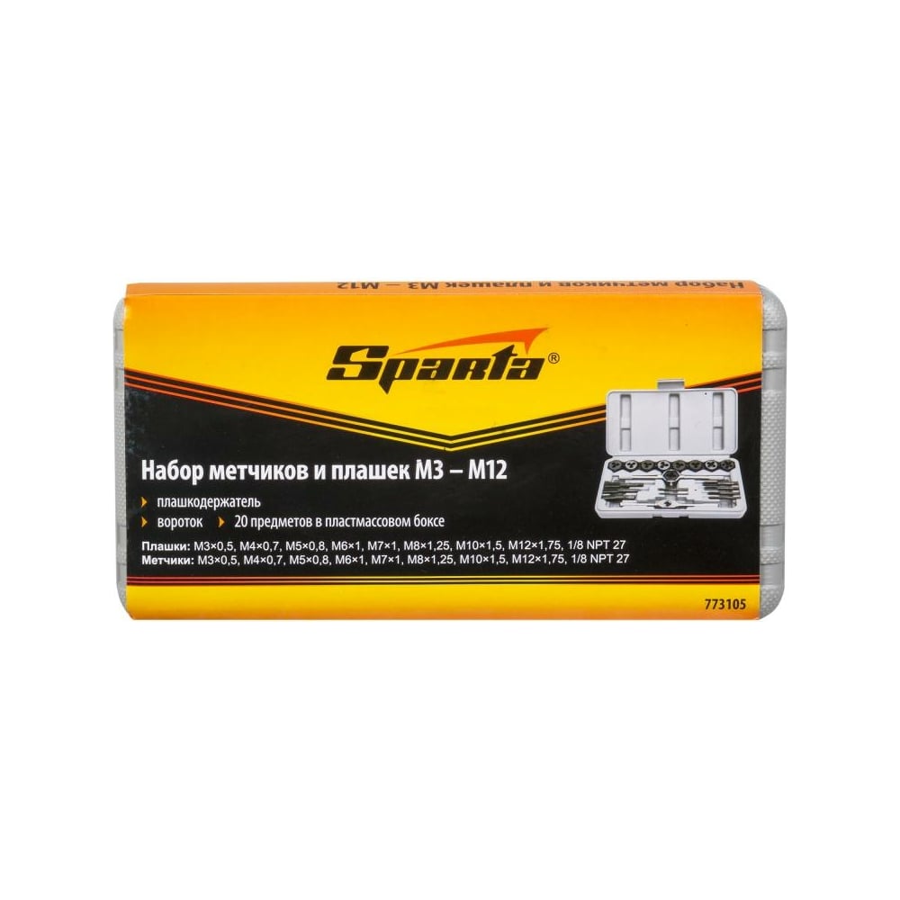 Набор метчиков и плашек М3 - М12, плашко-метчикодержатель (20 предметов в пласт. боксе) SPARTA 773105