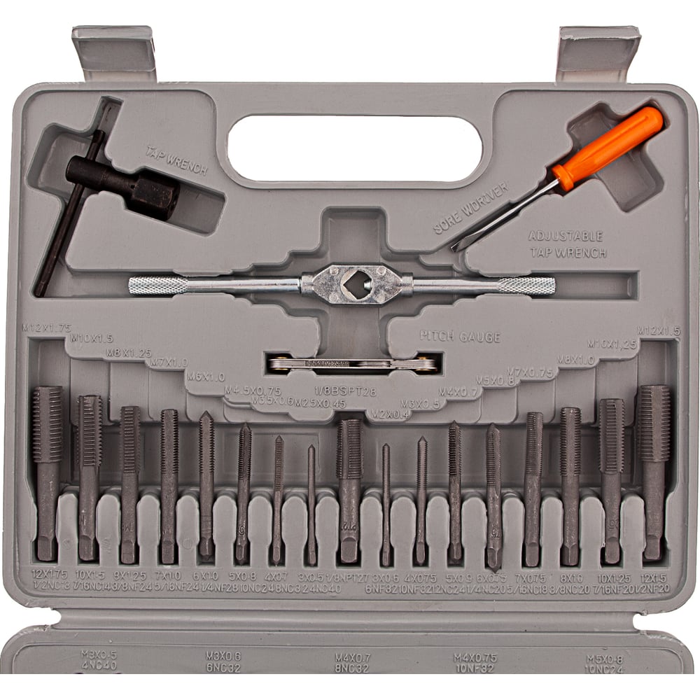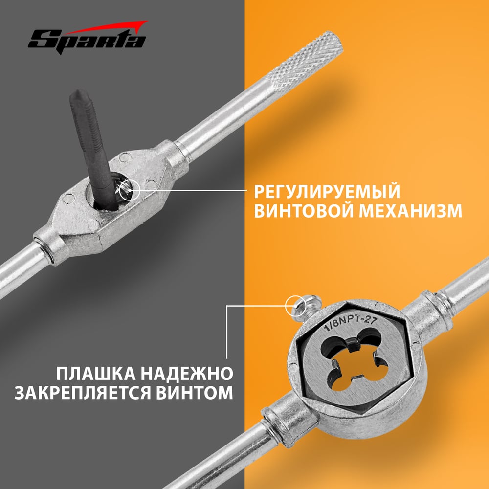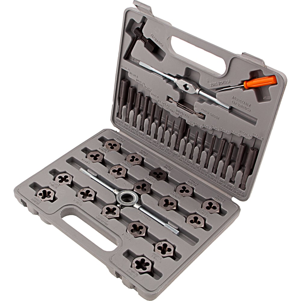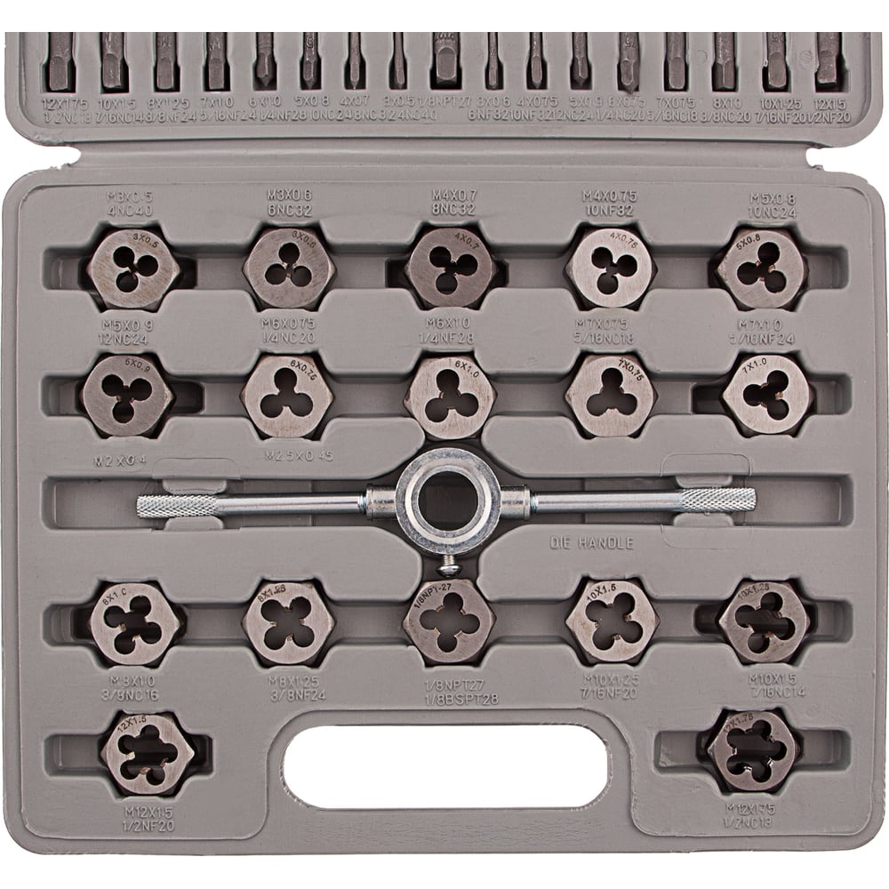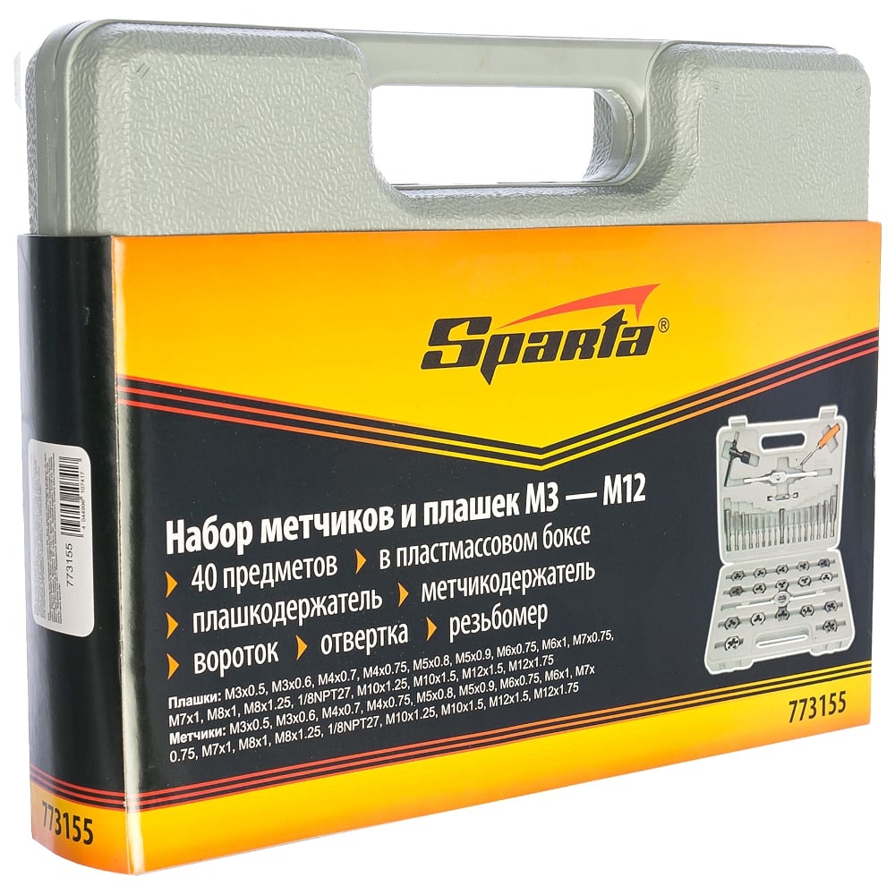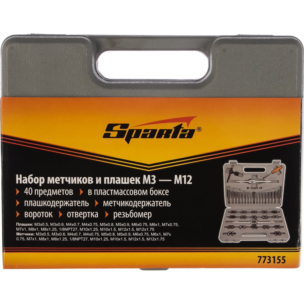 Набор метчиков и плашек SPARTA М3-М12, плашко-метчикодержатель, 40 предметов, в пластиковом боксе 773155