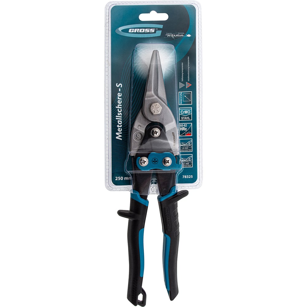 Ножницы по металлу GROSS PIRANHA 250 мм, прямой рез, сталь-CrMo, двухкомпонентные рукоятки 78325