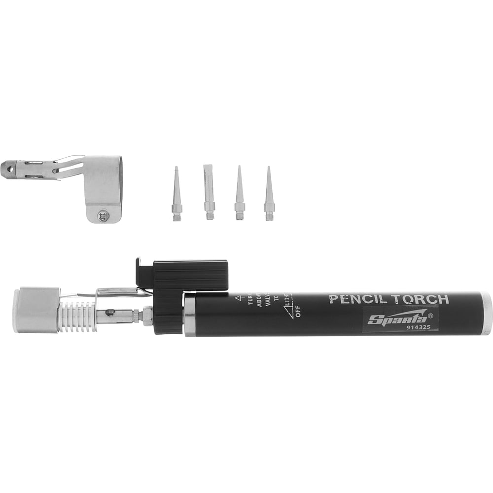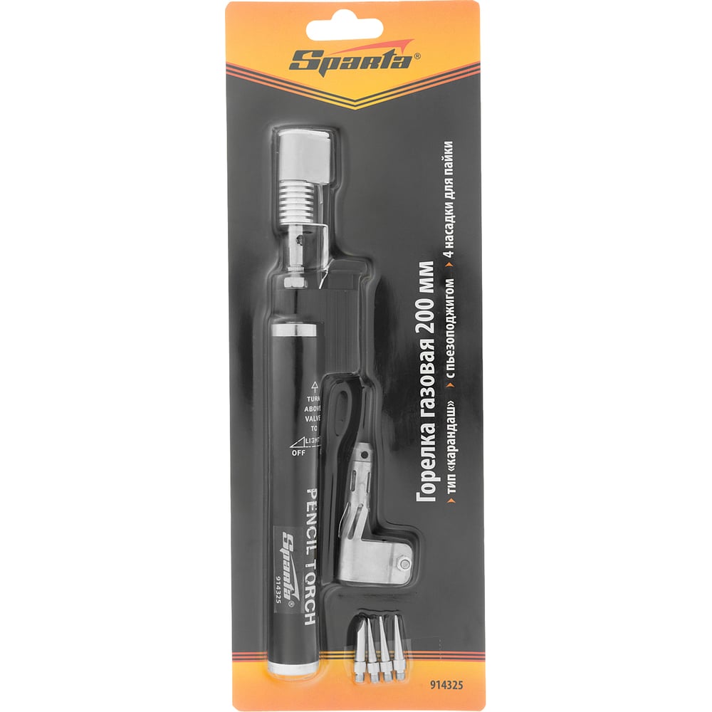 Газовая горелка SPARTA тип "Карандаш" c пьезоподжигом + 4 насадки для пайки,200 мм// 914325