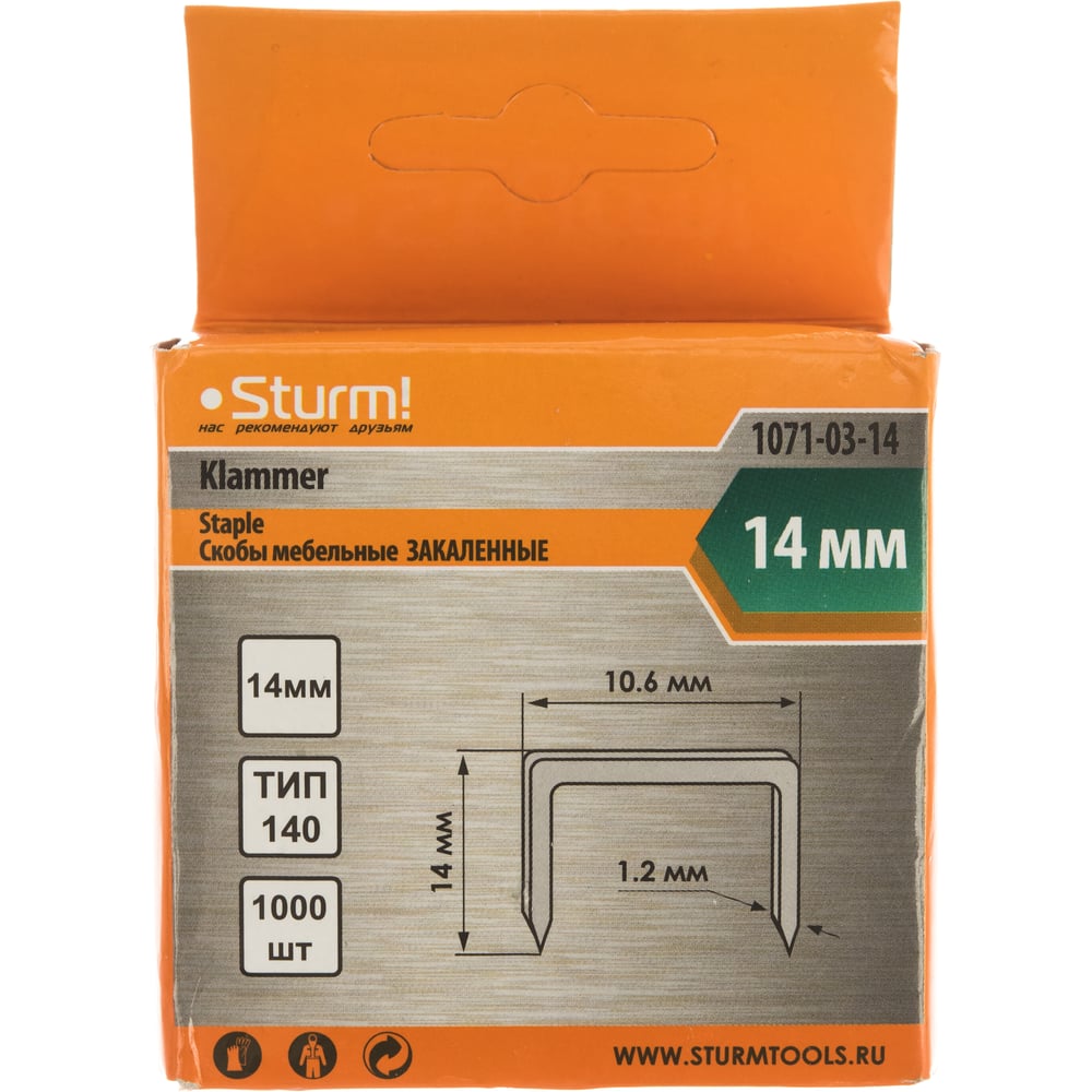 Скоба закаленная (1000 шт; 14 мм; Тип 140) для степлеров Sturm 1071-03-14