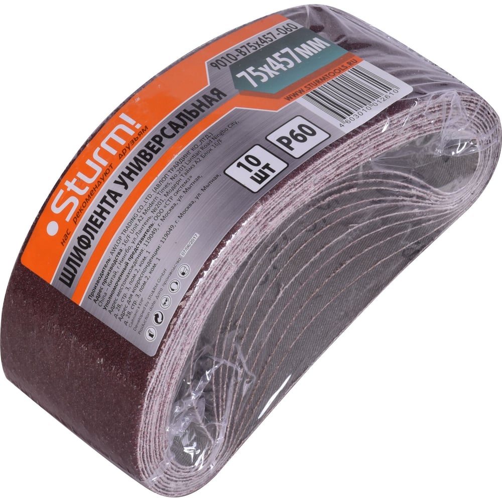 Шлифлента (457х75 мм; зерно 60; 10 шт.) для шлифмашин Sturm 9010-B75x457-060