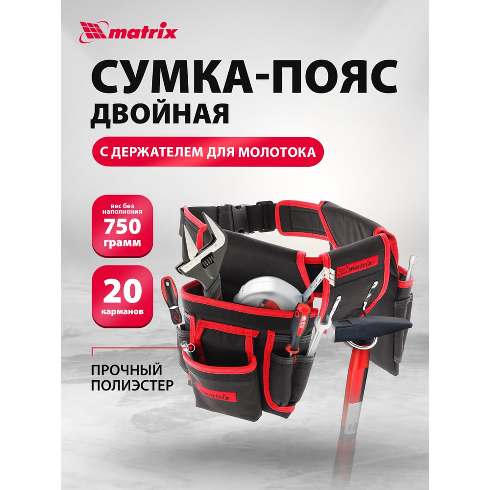 Сумка-пояс двойная (20 карманов; держатель для молотка) MATRIX 90240
