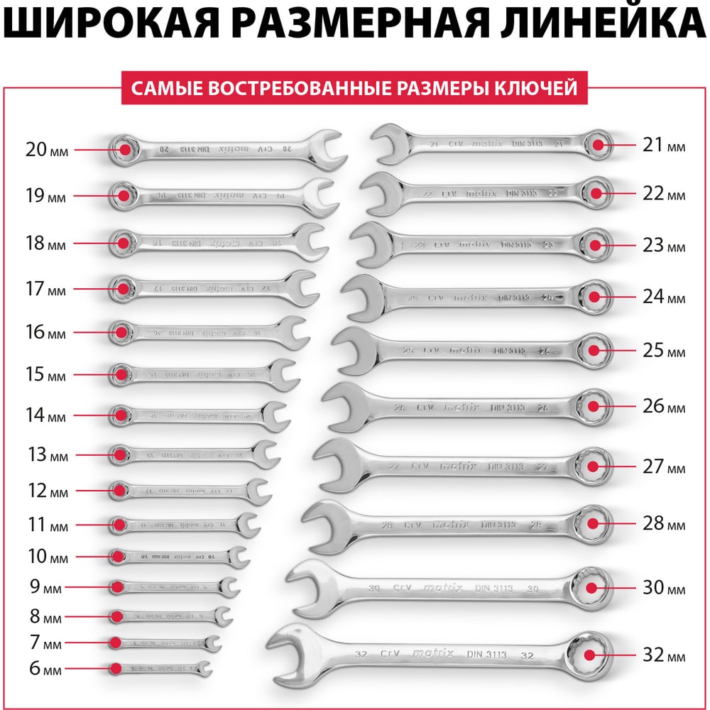 Набор комбинированных ключей, 6 - 32 мм, 25 шт., MATRIX 15425
