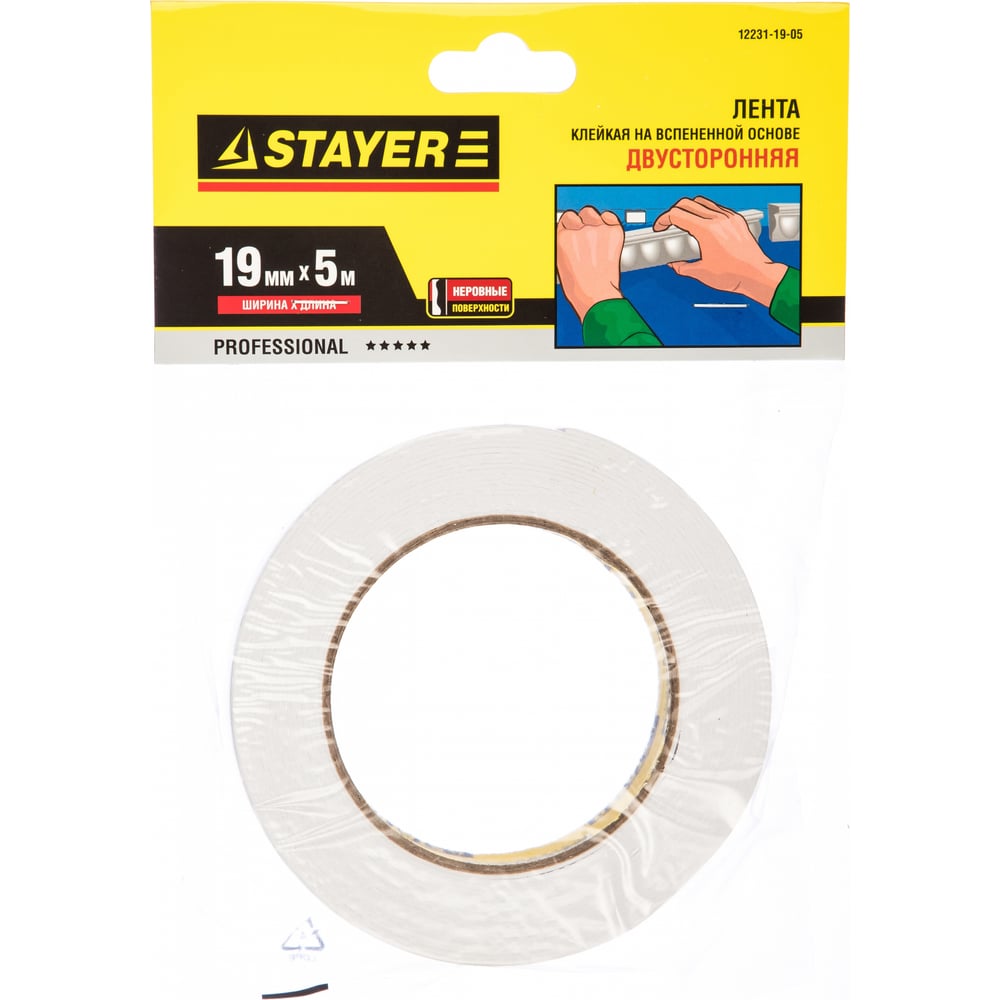 Клейкая двусторонняя лента STAYER PROFI 12231-19-05