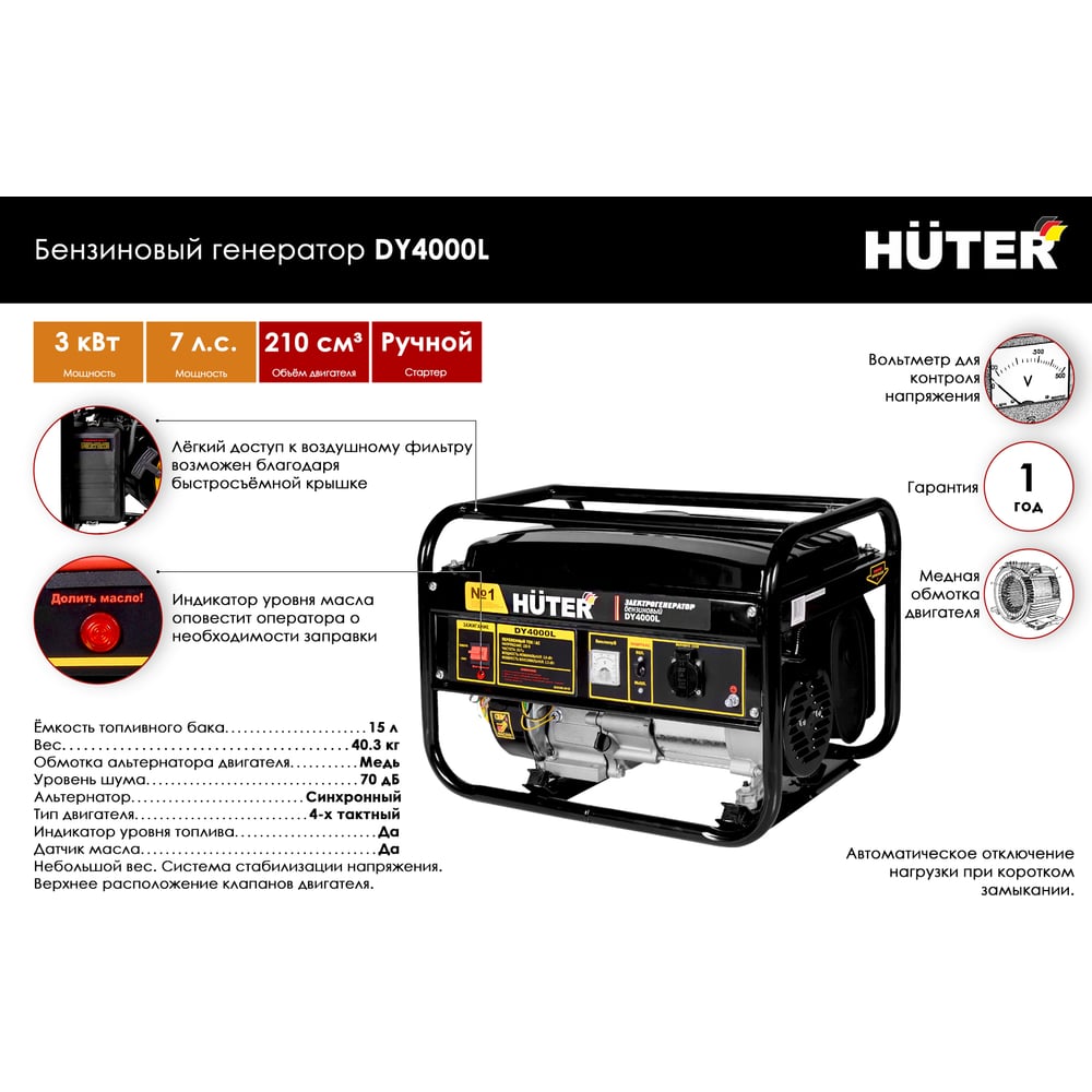 Бензиновый генератор Huter DY4000L