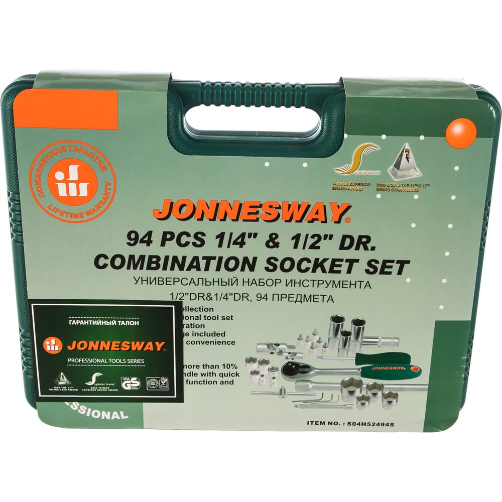 Набор торцевых головок 1/4"DR 4-14 мм и 1/2"DR 10-32 мм, 94 предмета, Jonnesway S04H52494S