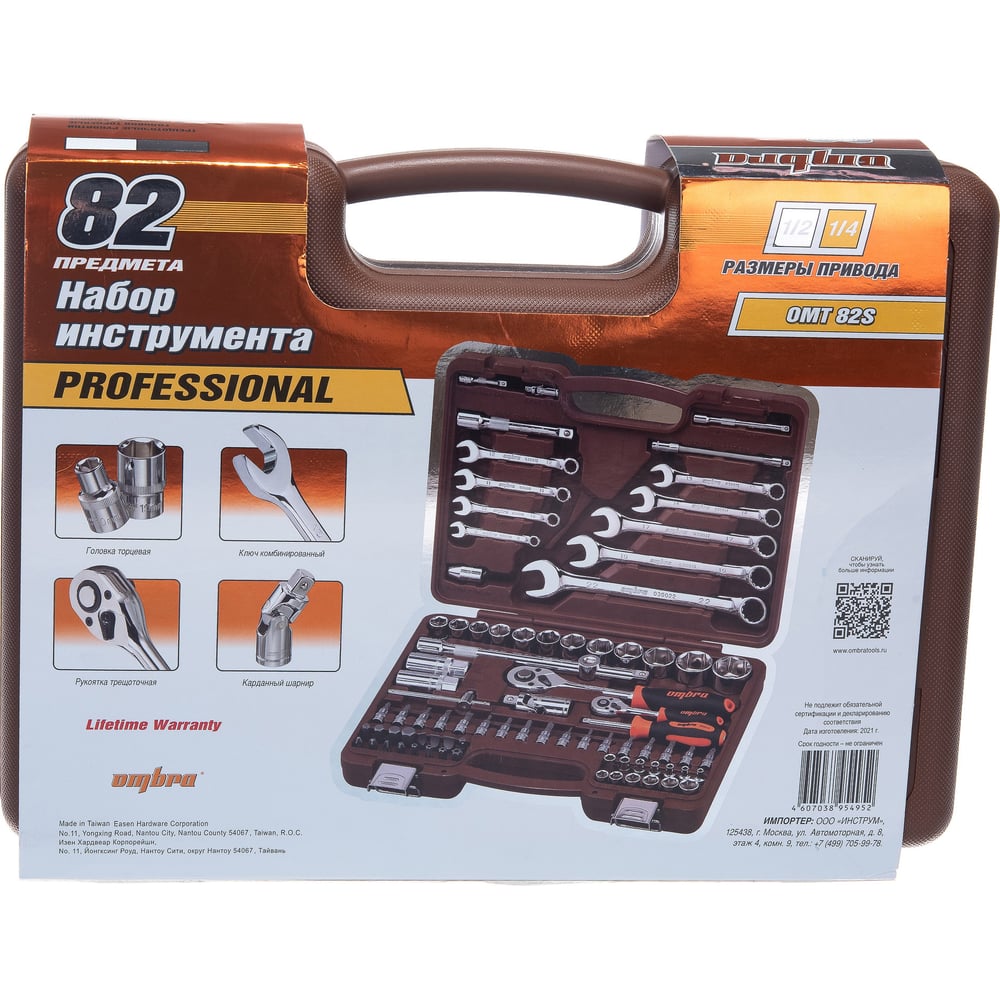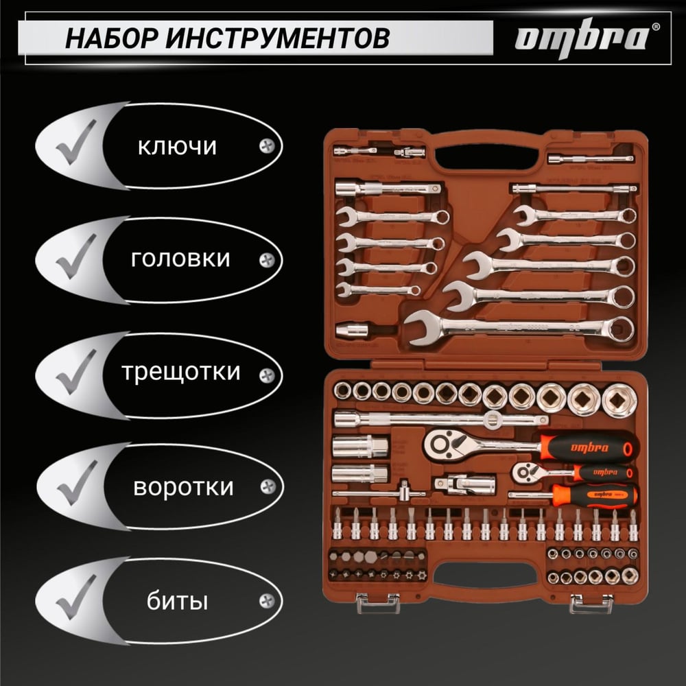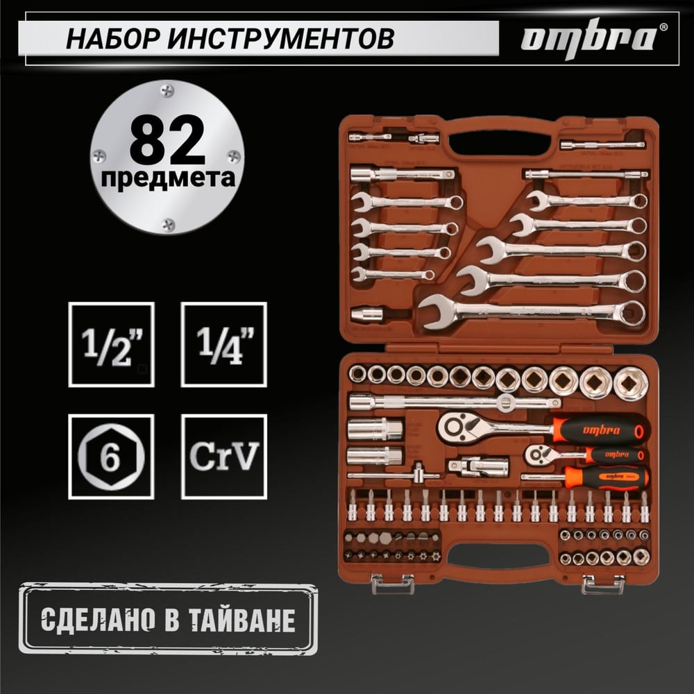 Универсальный набор инструмента Ombra OMT82S торцевые головки и аксессуары к ним, 82 предмета 55014 055014