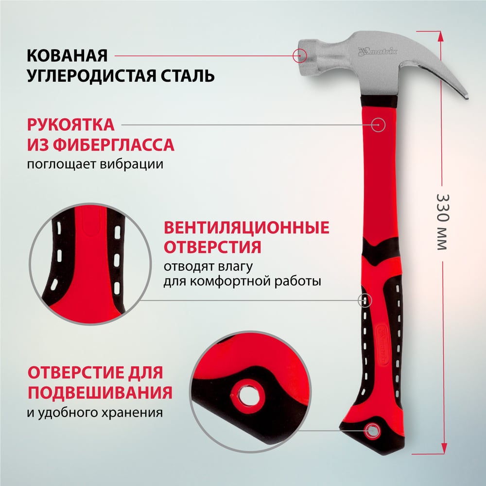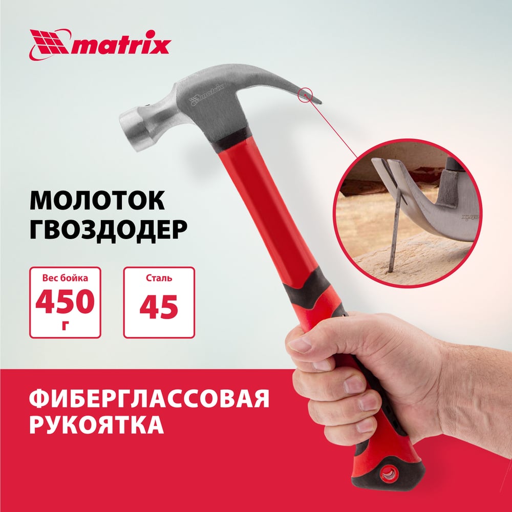 Молоток-гвоздодер MATRIX, 10446, 450 г