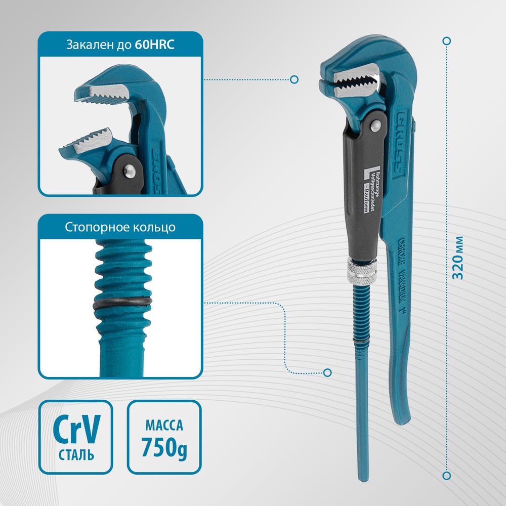 Ключ трубный рычажный GROSS №1, 1", цельнокованый, CrV, тип - "L"// 15601