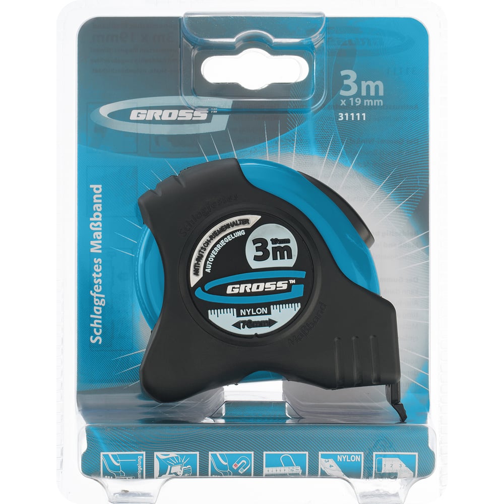 Рулетка 3 м x 19 мм GROSS Schlagfest 31111